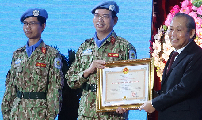 Tại lễ tuyên dương tối 5/12, trung tá Bùi Đức Thành, Giám đốc Bệnh viện dã chiến cấp 2 số 1 Việt Nam được Thủ tướng tặng bằng khen. 5 cá nhân nhận bằng khen của Bộ trưởng Quốc phòng gồm đại tá Trần Quốc Việt, thiếu tá Hồ Ngọc Phát, trung úy Sa Minh Ngọc, thiếu tá Nguyễn Thìn Cường, đại úy Nguyễn Hồng Hải.