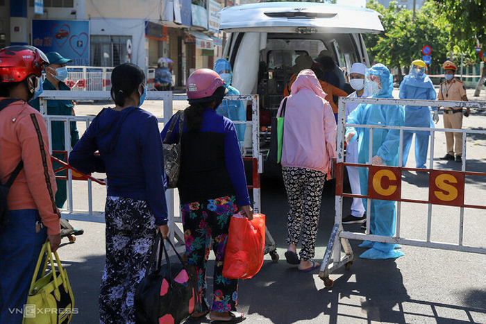 Sáng 29/8, khoảng 20 bệnh nhân chạy thận nhân tạo tập trung về chốt kiểm soát cách ly của Bệnh viện Đà Nẵng trên đường Quang Trung, phường Thạch Thang, quận Hải Châu.