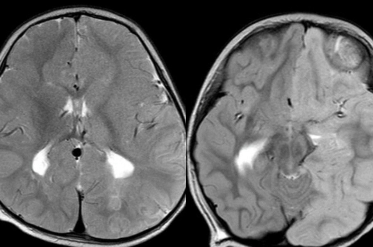Bệnh nhi N. được đặt nội khí quản, chuyển khoa Hồi sức tích cực Nhiễm. Kết quả MRI sọ não cho thấy bé có tổn thương hạn chế khuếch tán lan tỏa ở bán cầu não trái trong khi vỏ não phải bình thường.
