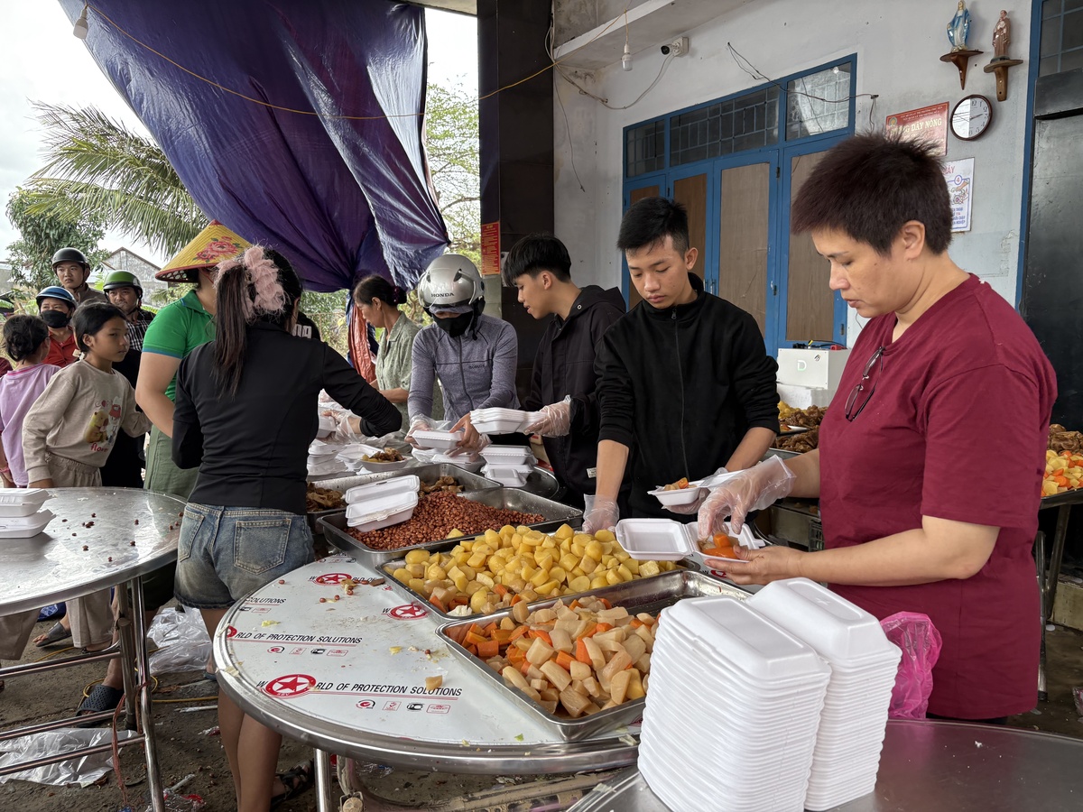 Anh Chung còn nhớ, buổi phát cơm đầu tiên của đoàn là vào ngày 23/11, cơm vừa mới dọn lên, rất đông người dân đã đứng chờ để nhận. Từ người lớn, trẻ nhỏ, vẻ mặt ai cũng chứa đầy nỗi niềm, lo toan. Có những cụ già người còn ướt sũng, tay run đón lấy từng suất cơm còn ấm nóng.