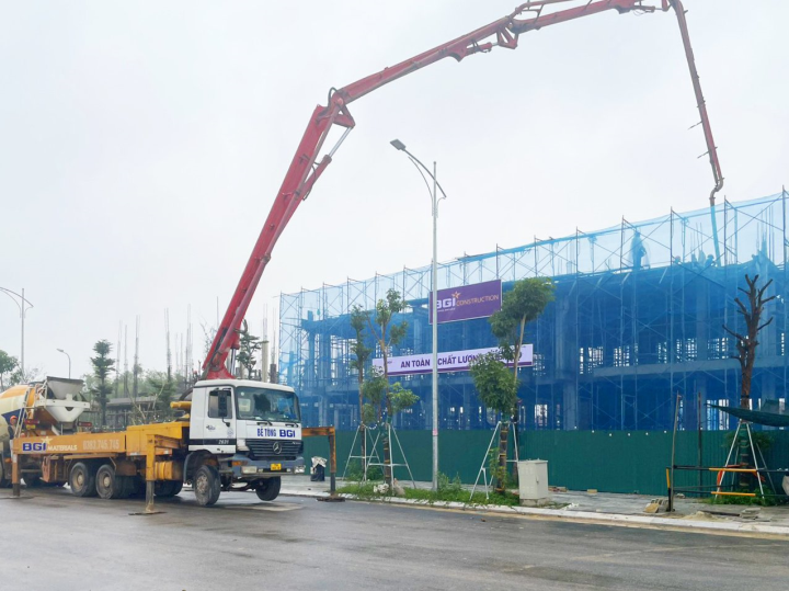 Trong đó, hệ thống cơ sở hạ tầng, kỹ thuật được hoàn thiện 100%, còn tại trục đường hiện diện khối công trình nhà phố (shophouse), công tác xây dựng đang bước vào giai đoạn gấp rút hoàn thành hạng mục xây thô.