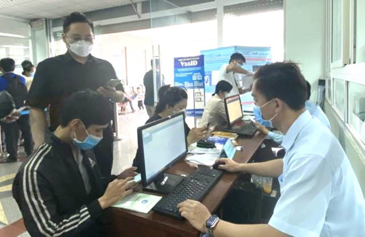 Người dân được hướng dẫn cài đặt ứng dụng VssID-BHXH số. (Ảnh: Dương Toàn)