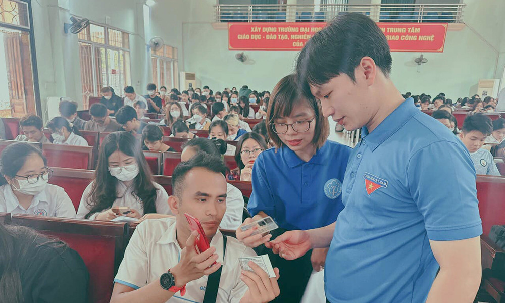 BHXH Thành phố tuyên truyền, vận động cài đặt, hướng dẫn sử dụng VssID-BHXH số tại Trường Đại học Hải Phòng.