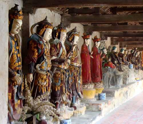 Riêng mỗi hành lang cũng có đến ngót 20 pho tượng lớn nhỏ, với những chủ đề khác nhau. Tượng đất nằm ở khắp nơi trong ngôi chùa cổ này.