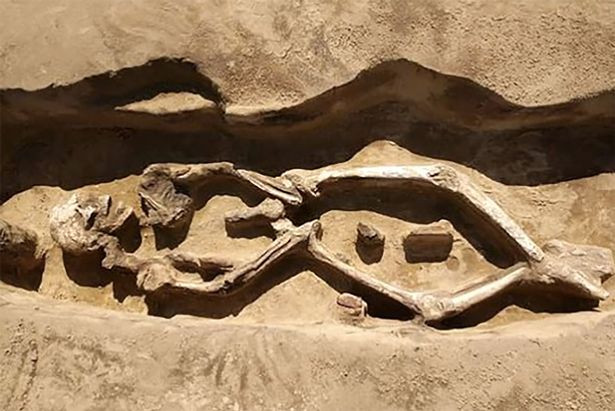Bộ xương nằm với tư thế kỳ lạ. (Ảnh: Mirror)