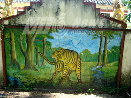 | Bức họa ông cọp ngay cổng đình |