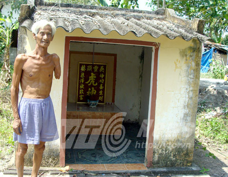 Tôi đang ngắm nghía ngôi đình, thì ông Huỳnh Công Thuận, còn gọi là Hai Thuận, chánh bái của đình tìm đến. Hỏi chuyện về cọp, sông Hai Thuận sôi nổi hẳn lên. Ông cũng là người sưu tầm, lượm lặt, nắm rõ nhất về ngôi đình và ông cọp 3 chân được thờ ở ngôi đình này.