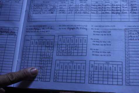Cuốn sổ theo dõi sức khỏe sinh sản có đánh dấu đầy đủ những tháng mang bầu của chị Chiến đã được 21 tháng tại Y tế xã. |