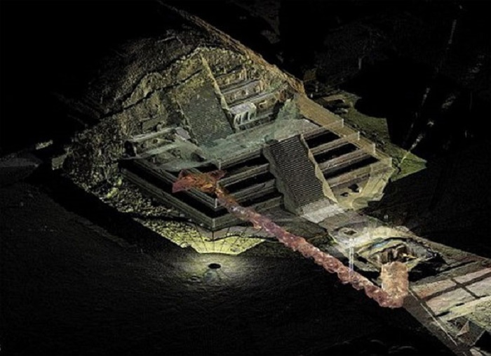 Đồ họa cho thấy con đường hầm có lẽ dẫn đến một ngôi mộ hoàng tộc ở Teotihuacan.