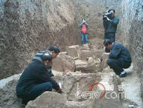 Tại tầng 2 của ngôi mộ, Phó đội trưởng đội khảo cổ Điền Á Kỳ phát hiện một cái đầu lâu, miệng há rất lớn, có lẽ lúc chết rất kinh hoàng. Ngay tối hôm ấy các nhân viên khảo cổ phát hiện 20 bộ hài cốt không còn nguyên vẹn, không quan không quách, đầu một nơi mình một ngả.
