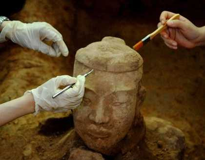 | Các nhà khảo cổ học đang khai quật các chiến binh đất nung |