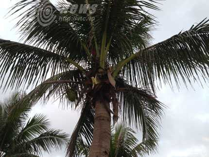 Một cây dừa bị chặt phá quả non và buồng hoa