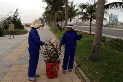 Chị H. công nhân vệ sinh tại khu vực biển đường Trường Sa cho biết: “Gần cả tháng nay, sáng nào cũng vậy, chúng tôi đều phải nhặt rất nhiều trái dừa non cùng buồng dừa bị chặt phá vứt đầy trên thảm cỏ. Thậm chí có ngày nhặt đến hơn trăm quả, ấy vậy mà đến sáng hôm sau lại xuất hiện thêm những quả mới bị chặt phá”.