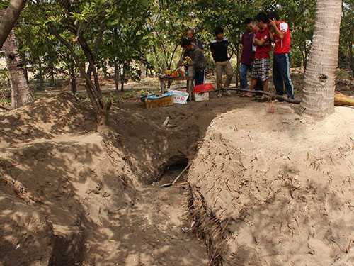 | Hiện trường khu mộ tập thể tại vườn nhà ông Nguyễn Văn Xê. |