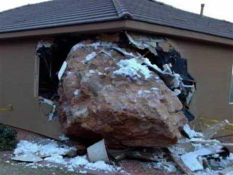 (VTC News) - Trong lúc chồng đi vắng, người phụ nữ ở bang Utal, Mỹ đã bị hòn đá khổng lồ phá tan phòng ngủ vào 3 giờ sáng và khiến cô bị thương khá nặng.