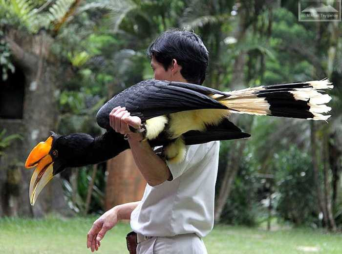 Khi chim non cứng cáp, chim bố sẽ dùng mỏ của mình mở 'cửa' để chim non ra ngoài. Hiện đã có nhiều quốc gia, tổ chức nuôi và thuần hóa loài chim này trong môi trường nuôi nhốt thành công.