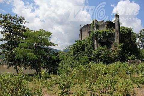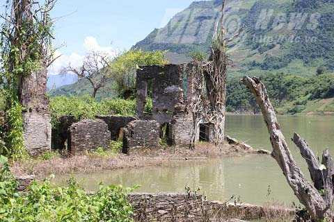 | Phần lớn phế tích đã chìm dưới lòng hồ thủy điện |