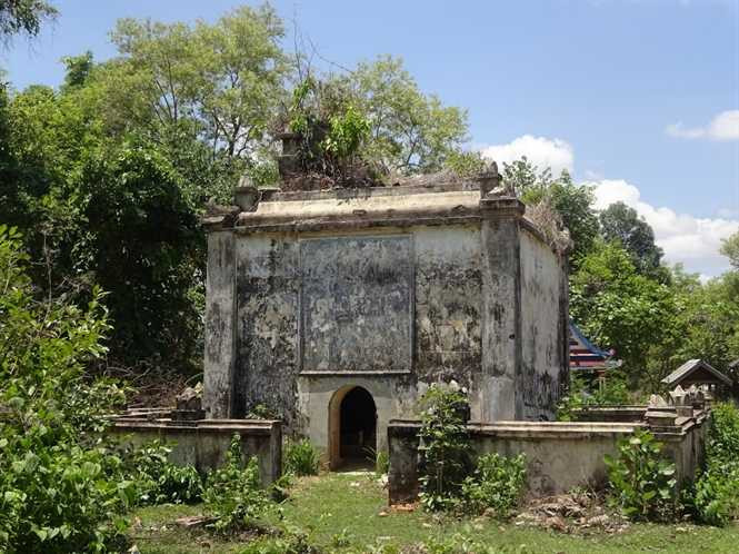 | Ngôi mộ hình khối bên trái của vua voi Khun Su Nốp |