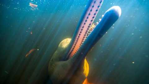 | Loài cá heo boto có màu hồng hiếm thấy ở Amazon |