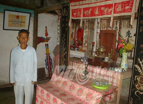 | Ông Tỉnh trong nhà thờ cai đội Phạm Quang Ảnh và các suất lính |