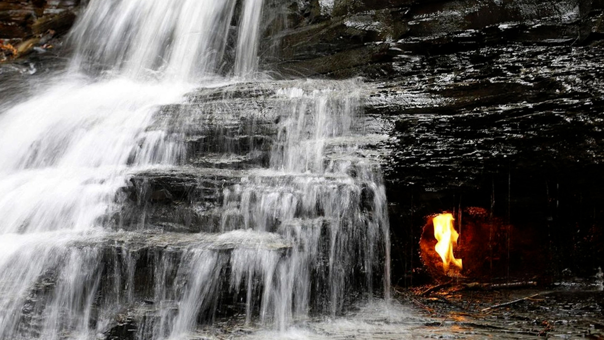 Bí ẩn 'ngọn lửa vĩnh cửu' nằm trong thác nước ở Mỹ