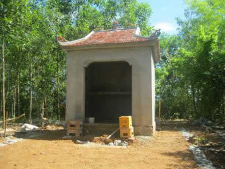 | Dân làng góp tiền xây miếu trên núi Đền |