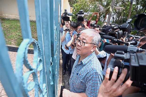 Người đàn ông tóc bạc thu hút sự chú ý của phóng viên khi xuất hiện trước đại sứ quán Triều Tiên. (Ảnh: The Star)