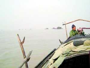 Ngư dân Trung Quốc đang đánh bắt cá trên hồ.