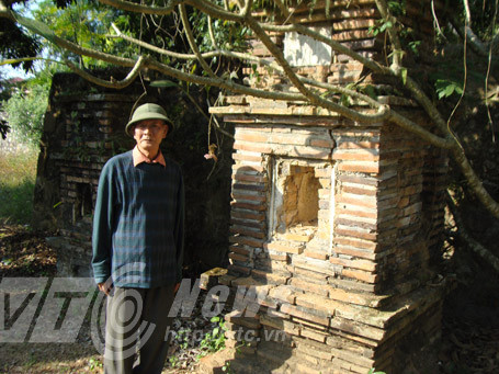 | Ông Trần Anh Nghĩa bên một tháp mộ cạnh chùa Linh Sơn |