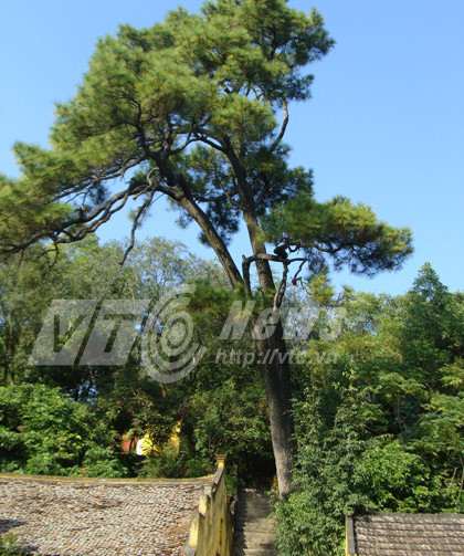 | Cây tùng cổ tỏa bóng mát che chùa Linh Sơn, được cho rằng đã 700 tuổi |