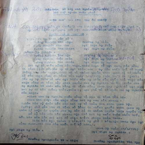 | Bản giao ước của hai dòng họ Nghiêm – Nguyễn Tiền được lập năm 1993. |