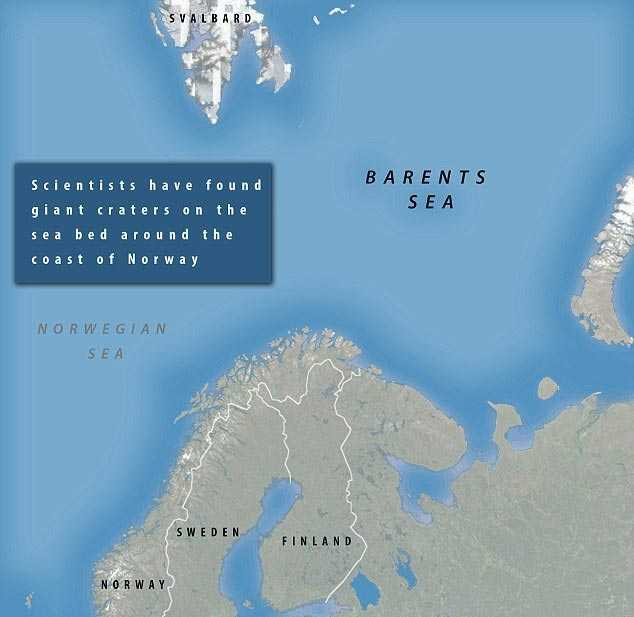 Theo báo cáo nghiên cứu, các chuyên gia đến từ Đại học Bắc cực của Na Uy đã phát hiện nhiều hố có chiều rộng lên tới 800 mét và sâu gần 45 mét ở khu vực đáy biển trung tâm, hơi chếch về phía tây của biển Barents. Các hố khổng lồ dưới đáy biển này được tin là hình thành do sự tích tụ của khí methane ở ngoài khơi bờ biển Na Uy - một quốc gia rất giàu khí đốt tự nhiên.