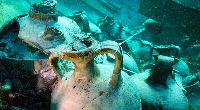Con tàu chở hàng trăm amphorae, một dạng bình cổ 2 quai, thân bầu, cổ thon, đựng rượu vang, ô liu, dầu và garum (một loại nước chấm lên men).