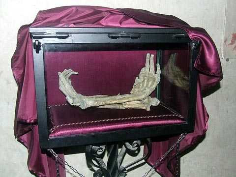 | Đôi bàn tay tương truyền là của một tên trộm định đánh cắp thanh gươm nhưng sau đó đã bị bầy sói rừng giết chết. |