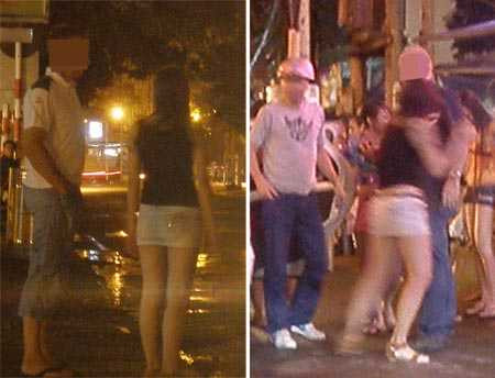 Khi phố Tây bắt đầu bước vào đêm là lúc dàn kiều nữ xuất hiện. Họ đứng ngồi lố nhố trong các quán bar, quán nhậu, quán cà phê. Họ liếc mắt đưa tình, lả lơi với khách bằng thứ tiếng Tây bồi õng ẹo và các kiểu ôm hôn nồng nhiệt… Thời khắc để thế giới chân dài chuyên sống về đêm ở phố Tây bắt đầu "nóng".