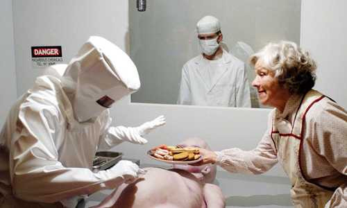| Hình ảnh các bác sĩ khám nghiệm thi thể người ngoài hành tinh sau khi xảy ra một tai nạn liên quan đến tàu vũ trụ của người ngoài Trái đất năm 1947. Sau này, bức ảnh này được xác định là giả mạo. |
