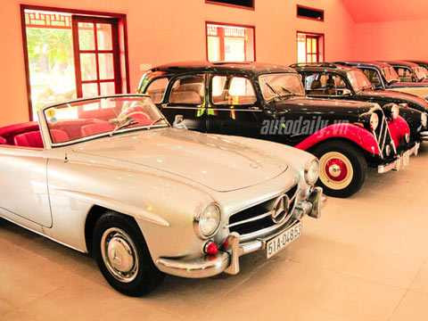 Nhà để xe của ông Hoan cũng là một ngôi nhà xây theo kiến trúc cổ, 4 mái, rộng tới cả trăm m2. Tôi đã thực sự bị sốc khi thấy 8 chiếc xe mà ông Hoan đang sở hữu đều là những chiếc xế rất cổ và độc. 3 chiếc Citroen Traction đời 1937, 2 chiếc Citroen DS 21 và 23 (1955 -1957), 1 chiếc Volkswagen Beetle 1302 đời 1970, 1 chiếc xe Mercedes-Benz 220S đời 1957 và 1 chiếc “Mẹc” 190SL mui mềm của thập kỷ 50.