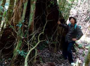 | Thầy thuốc đông y Phạm Văn Thanh bên một gốc ngọc am khổng lồ đã chết từ cả trăm năm trước. |