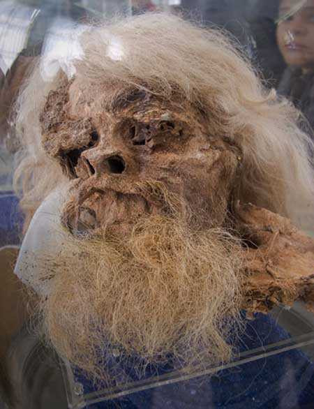 | Xác ướp đầu tiên với râu tóc dài và bạc trắng mà một số nhà nghiên cứu cho rằng giống với nguyên mẫu của “thần rừng Satyrs”. |