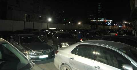 | Ô tô ùn ứ bên ngoài lối vào tòa nhà Mipec do không có lối vào hầm gửi xe. |
