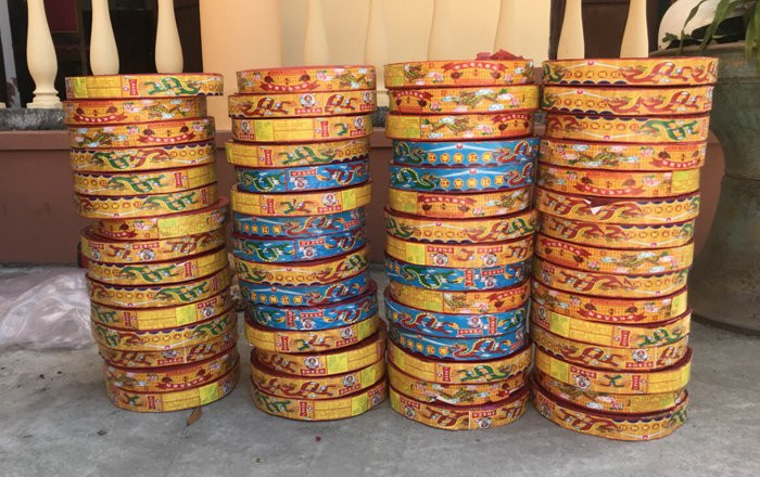 Tại thời điểm kiểm tra, lực lượng chức năng phát hiện Luận đang vận chuyển 60 bánh pháo, mỗi bánh có kích thước 30x6 cm.
