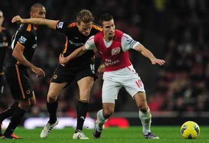 Arsenal:Szczesny, Djourou, Koscielny, Mertesacker, Vermaelen, Song (Ramsey), Arteta, Rosicky, Benayoun (Arshavin), Gervinho, Van Persie. Wolves:Hennessey, Zubar (Stearman), Berra, Johnson, Ward, Forde (Guedioura), Henry, Milijas, Jarvis, Hunt, Fletcher (Doyle).