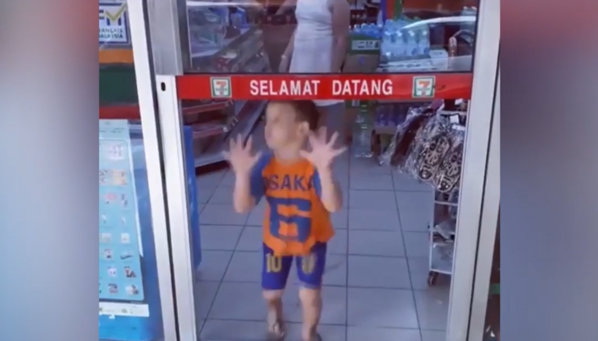 Bị cánh cửa 'đánh lừa', cậu bé ngã sõng soài