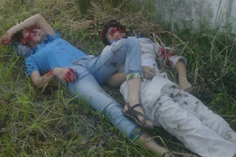 | Đôi nam nữ nằm bất động và phải cấp cứu sau vụ tai nạn. Ảnh do nhân chứng cung cấp. |