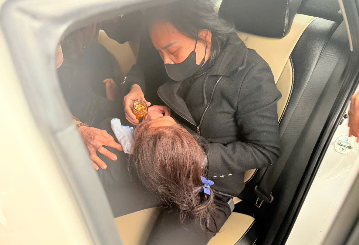 Kết thúc phiên toà, mẹ nạn nhân khóc ngất, được người thân dìu ra xe chăm sóc.