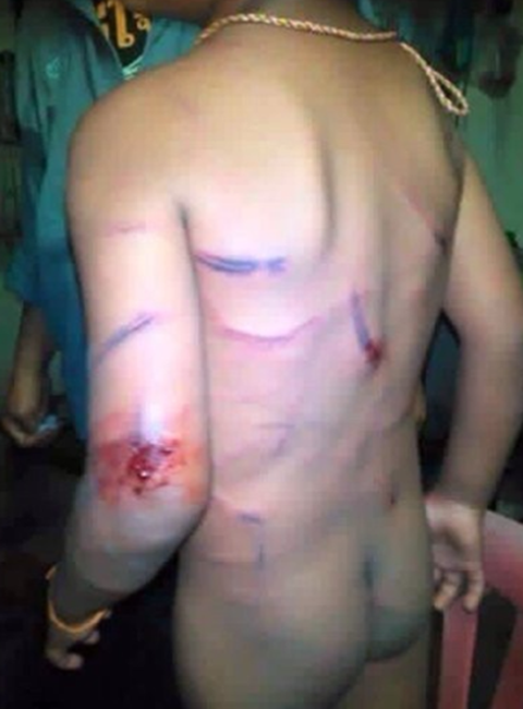 Một lúc sau nhiều thanh niên bức xúc, hùng hổ chạy lại thì ông ta nhanh chóng bỏ đi. Bé trai ở lại với đầy vết tích trên người.