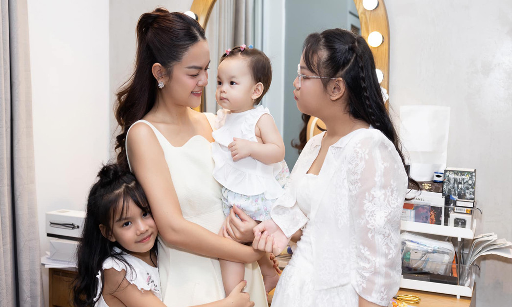 Phạm Quỳnh Anh cùng 3 cô con gái.