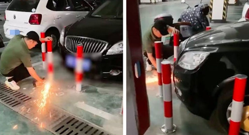 Bị chiếm chỗ đậu xe, người đàn ông hàn luôn 8 cọc sắt cảnh cáo.