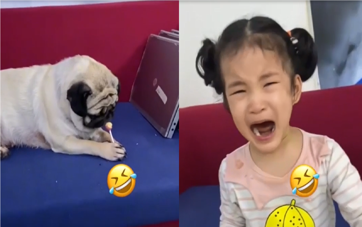 Bị chó cướp mất kẹo mút, bé gái khóc ầm