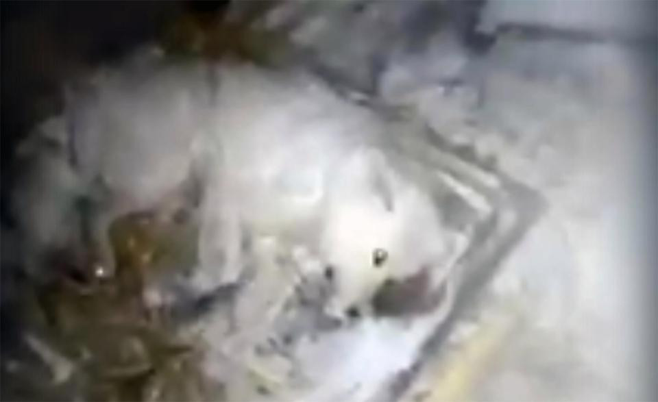 Sự việc xảy ra tại Yakutsk (Nga), thành phố lạnh nhất thế giới. Hình ảnh đau lòng cho thấy chú chó màu trắng, đôi mắt vẫn mở to đầy sợ hãi, vô thức vẫy chân cầu cứu khi lực lượng cứu hộ tới. Toàn bộ cơ thể chú chó bị đóng băng, dính chặt vào mặt đất trong đêm đông lạnh lẽo ở xứ sở bạch dương.